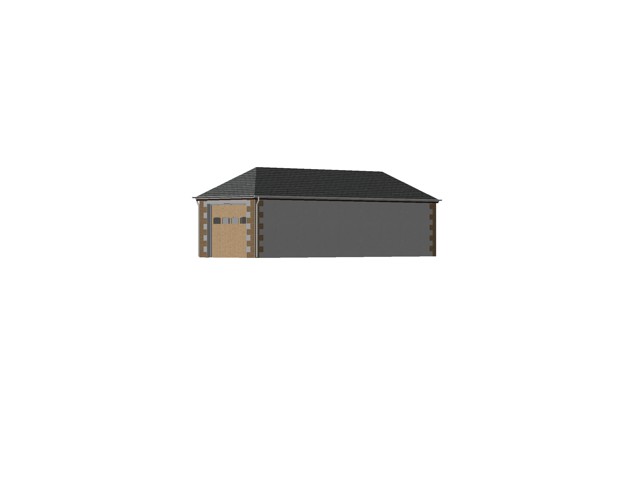 3m x 10m garage with a 35 degree pitch natural slate hipped roof and rendered walls with brick corner stones
