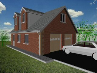3D image of Loft Garage - Large Dormer Windows - Clay/Concrete Plain Tiles